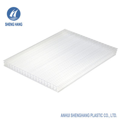 Shenghang Plastic Four Wall Polycarbonate Sheet is one of the rigid-structured multiwall polycarbonate sheets.It has four walls and creates three parallel insulation channels. This design brings its better thermal insulation and impact resistance than twin-wall or 3 layers plastic polycarbonate sheet. Meanwhile, it is lighter than glass but much stronger and more flexible. And four wall polycarbonate sheet has great performance under a big temperature range from-40°C to +120°C.